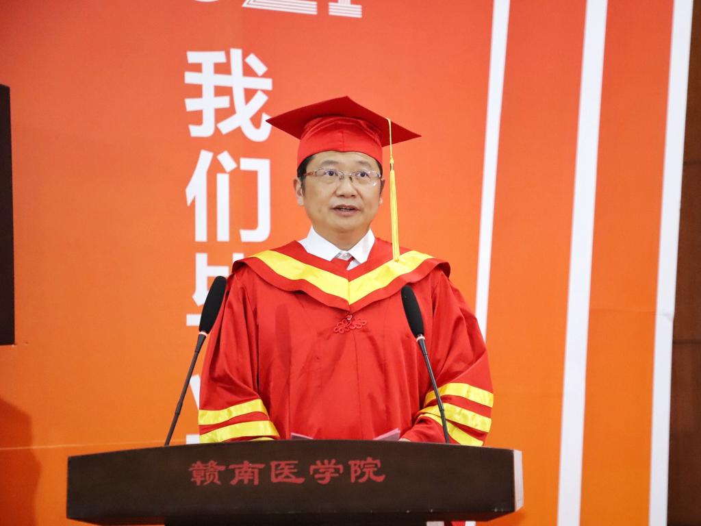 光阴荏苒,物换星移。岁月的脚步匆匆而过,美好的校园生活悄然流逝,不知不觉间,又到了新一届赣医学子与师长同学互道珍重的毕业时刻了。今天,我们在这里隆重举行2021届学生毕业典礼暨学位授予仪式,共同迎来属于你们的最美好的毕业季。首先,我代表学校党政向圆满完成学业的2021届2829名本专科生、96名研究生、53名留学生表示最热烈的祝贺!向陪伴你们一路前行、一起成长的老师们、亲人们致以最诚挚的谢意!