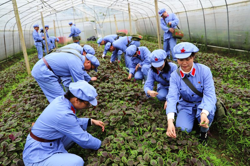 在前往瑞金途中,学员们分组高歌《十送红军》《毛委员和我们在一起》等红歌;在华屋红军村,学员们参观新旧华屋村和村史馆,在村民家同吃同住同劳动,感受改革开放给乡村带来的巨大变化。