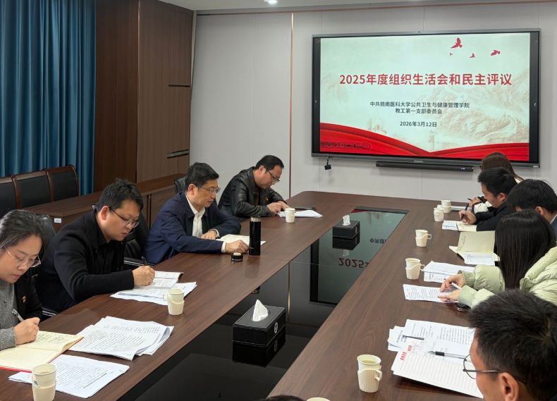 3月12日,学校党委书记、校长张小康以普通党员身份,参加其所在的公共卫生与健康管理学院教工第一党支部2025年度组织生活会,并同党支部党员一起交流学习体会,查找差距不足,深刻剖析原因,明确整改措施,开展民主评议党员。该院党委副书记曾发挥列席并作点评。