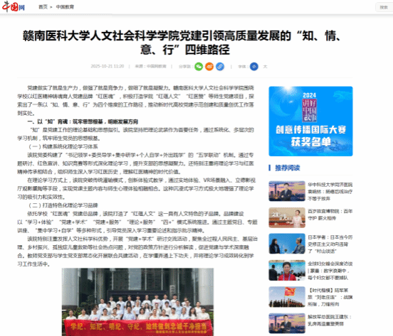 赣南医科大学人文社会科学学院党建引领高质量发展的“知、情、意、行”四维路径_中国网