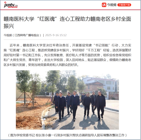 近年来,赣南医科大学坚决扛牢政治责任,开展基层党建“书记领航”行动,大力实施“红医魂”连心工程,推进抓党建促乡村振兴,学好用好“千万工程”经验,选优派强管好用好驻村第一书记和工作队,充分发挥教育、医疗和人才等方面的优势,组织全校各级党组织和广大师生党员、青年团干,走出大学校园,深入田间地头,贴近基层群众,倾情助力赣南老区乡村振兴发展,受到当地党委政府和人民群众的好评。