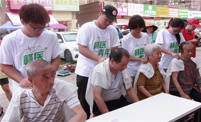 在文武坝镇及会昌北站前广场,队员们将“红医精神”转化为健康服务动能,发挥康复专业优势,为当地村民提供急救技能培训、健康科普宣教、常见肩颈病防护、康复推拿等服务,将革命年代的“战地救护”转化为新时代的“健康守护”,以实际行动传承红医精神,践行医者使命。